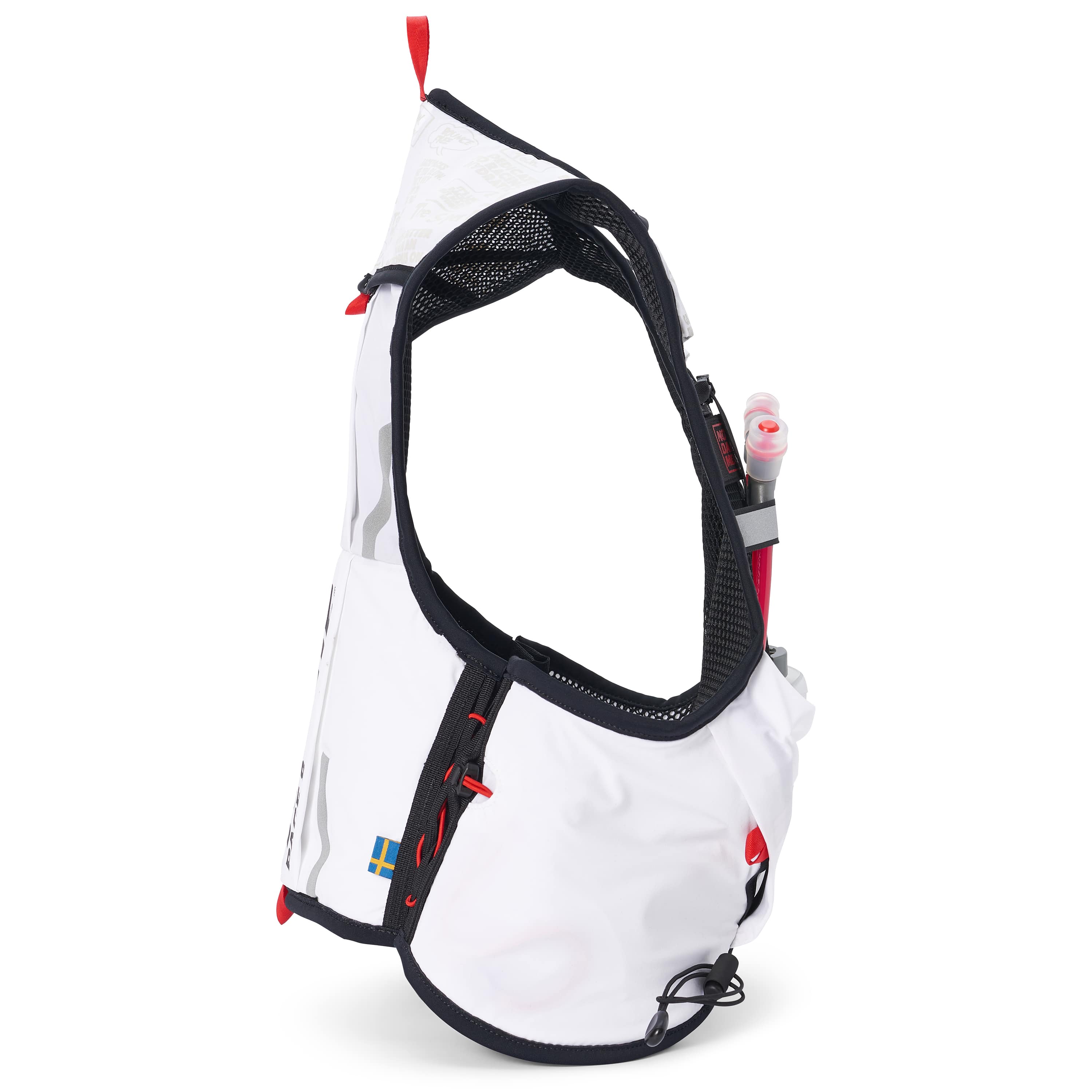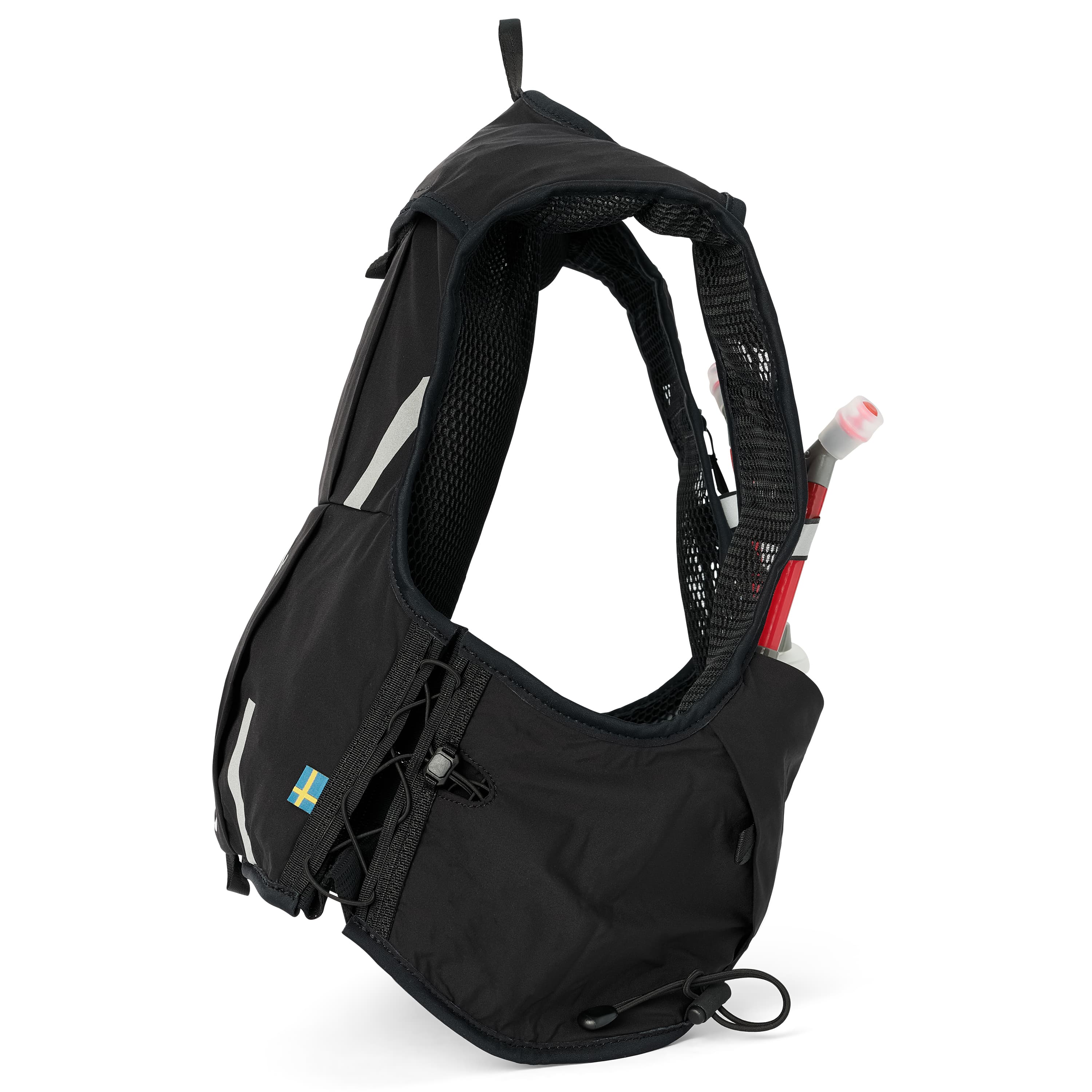 The harness technology integrated in the vest for trail runners. The vest is light-weight and sits tight with zero bounce. It has elastic side panels that expands along with the chest during physical exertion, allowing a constant tight and compliant fit